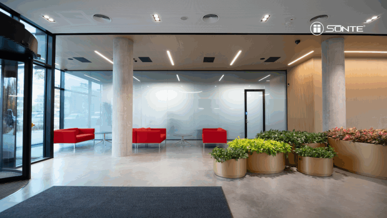 Folia SONTE® to nowoczesne rozwiązanie, które pozwala w kilka sekund zmienić szybę z przezroczystej w matową. Działa w oparciu o technologię ciekłokrystaliczną. W stanie beznapięciowym kryształki w folii rozpraszają światło, dając efekt matowego szkła i pełnej prywatności. Po podłączeniu zasilania kryształy ustawiają się równolegle, dzięki czemu szkło staje się przejrzyste i wpuszcza naturalne światło.