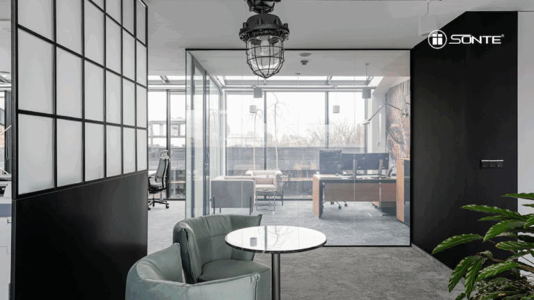 Folia SONTE® może być zastosowana w szkle laminowanym, co znacząco zwiększa jego funkcjonalność. Umieszczona pomiędzy taflami szkła folia LCD jest trwale chroniona przed uszkodzeniami i wilgocią, a jednocześnie pozwala na błyskawiczną zmianę transparentności przeszklenia. Dzięki temu szkło laminowane z folią SONTE łączy w sobie wysokie parametry bezpieczeństwa z możliwością inteligentnego zarządzania prywatnością. Rozwiązanie to sprawdza się zarówno w przestrzeniach biurowych, hotelowych, jak i w nowoczesnych wnętrzach mieszkalnych